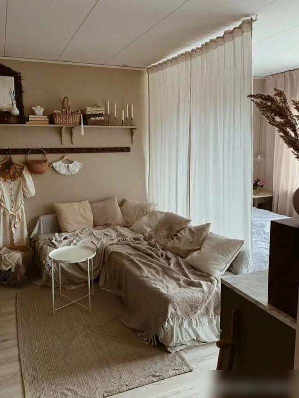 要说这小屋的精髓,就俩字:榨干!墙上挂满开放架,钩子排成列,连窗帘都是能屈能伸的薄纱款。白天拉开来透光,晚上扯过去当隔断,客厅秒变更衣室。说白了,人家把每一寸墙皮都盘出了包浆,愣是没让杂物堆成山。这收纳功力,比某些号称“断舍离”的网红博主实在多了。